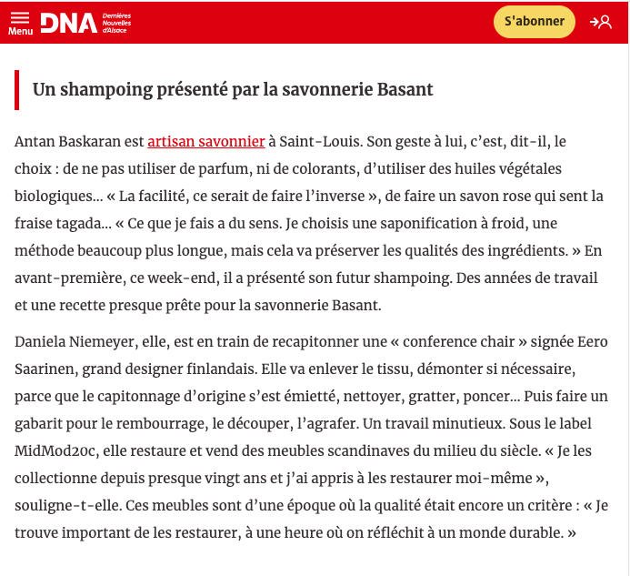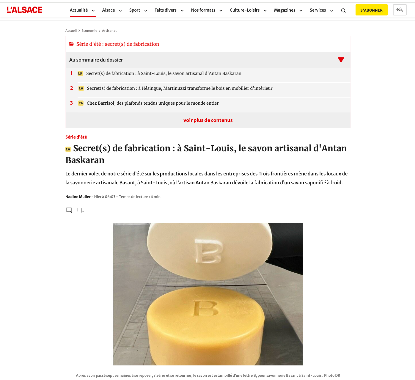 Artikel über die Savonnerie Basant und die Einführung der Seife „L’ombre étoilée“.